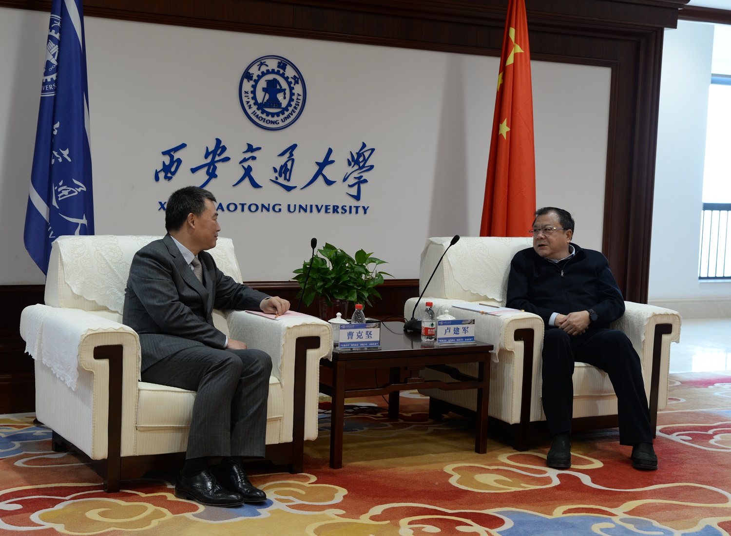簽約儀式前,陜西省委常委、西安交大黨委書記盧建軍接見了參加簽約的有關人員。在長達一個小時的接見中,盧書記就如何將高校科研成果產業化,打通“產學研合作壁壘”對企業提出了希望,勉勵開山要把“企業當事業經營”,希望合作取得切實的成果。曹克堅董事長向盧書記簡要匯報了開山股份15年來與西交大合作的成果,以及在合作過程中的心得體會。