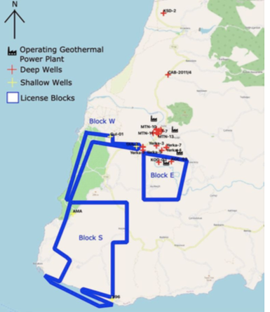 1TTG的地熱開發準證,其中藍色邊界線內為準證覆蓋區域(E區塊Transmark GPP項目所在地)。
