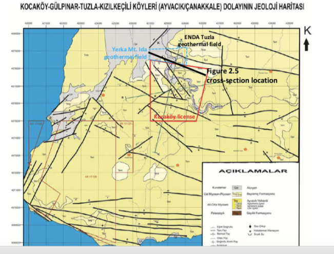 Transmark GPP項目位于Biga半島;北安塔利亞斷裂區南段、Kestanbol斷層系統的移動主導了區域內由地熱結構控制的滲透性,建立深層、高溫的地熱流體帶至淺層的熱循環。項目所在的恰納卡萊省有超過5個投運和開發中的地熱項目。