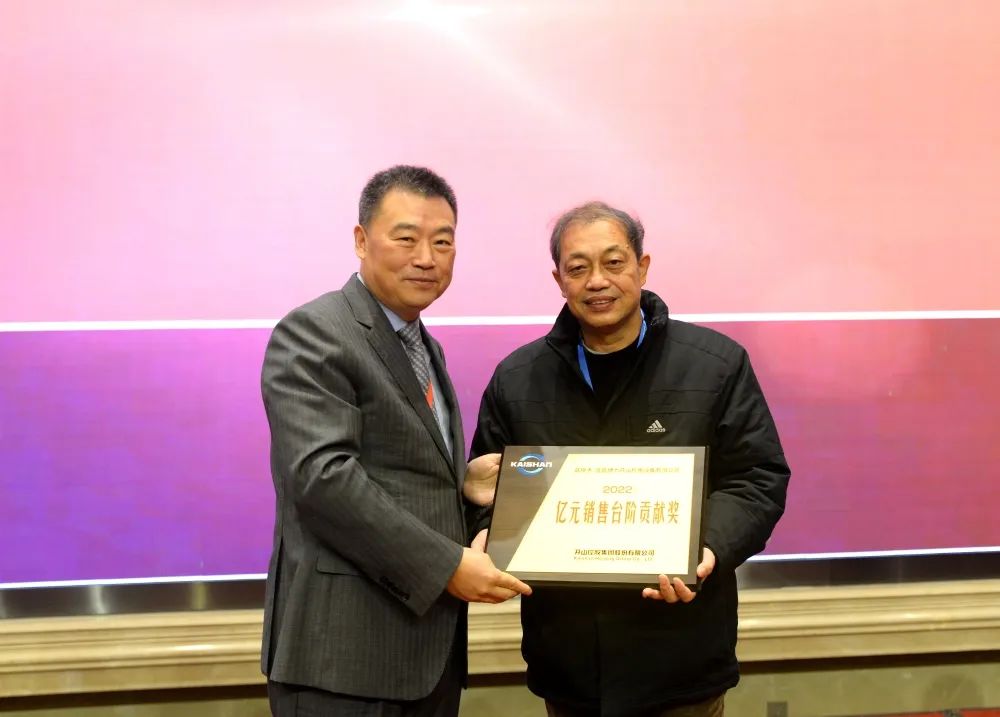 會議還向23位優(yōu)秀經(jīng)銷商頒發(fā)獎牌。值得慶祝的是,2022年在較為困難的經(jīng)營環(huán)境下,誕生了開山歷史上第一家年度銷售額過億的經(jīng)銷單位:宜昌博力開山機電設(shè)備有限公司。